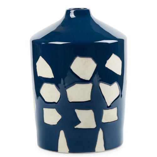 The Trainor Vase has a mesmerizing, repeating abstract pattern made by alternating sections of glossy deep blue glaze and matte white. It’s a reinterpretation of traditional cobalt blue and white porcelain. With a narrow opening, the Trainor is perfect for a single branch or single flower stem. It can also be used as a decorative object on an etagere or table. Made with high-temperature fired porcelain, the Trainor is a standout addition to your bathroom, entryway, or kitchen.
