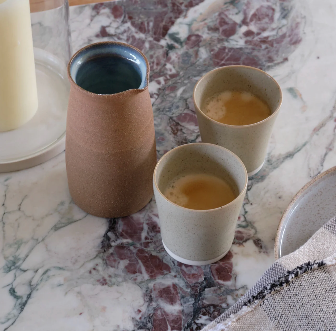 This perfect little tumbler is hand thrown on the potter's wheel and then glazed with a ivory hue called "Dunes". It is the ideal format for all your beverages.